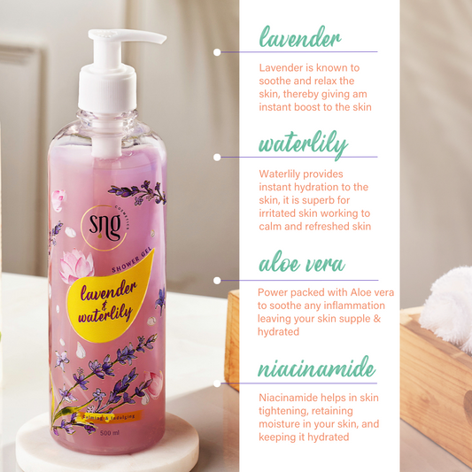 Lavender and Waterlily Shower Gel + Aloevera and Vitamin E Light Hydra Boost Face Moisturiser (500ml + 150ml)