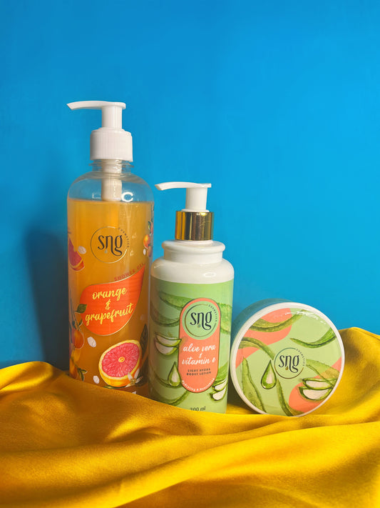 SNG’s Ultra Boost Body Lotion hydrates skin & its Niacinamide, Aloe Vera powered formula leaves skin plump & deeply nourished.